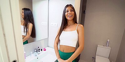 Brunette all-natural teen gets banged by her hung lover