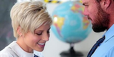 Short haired coed Makenna Blue seduced her teacher