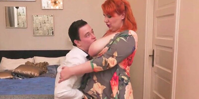 big cock stepmom, big mom fucks slim son - mature facial